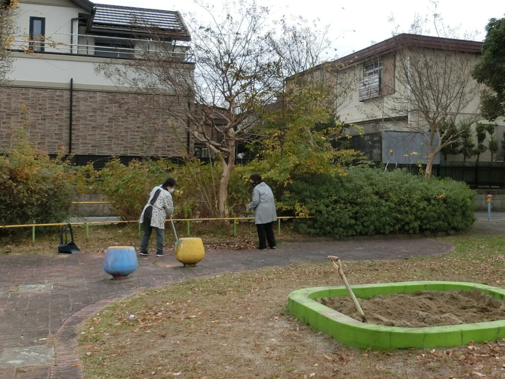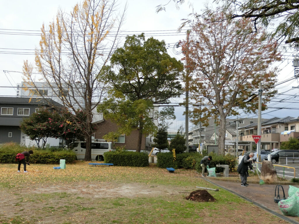 12がつ4日に町内会ちょうないかい高坪公園たかつぼこうえん清掃せいそうをしました。