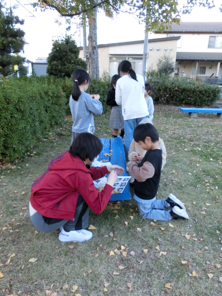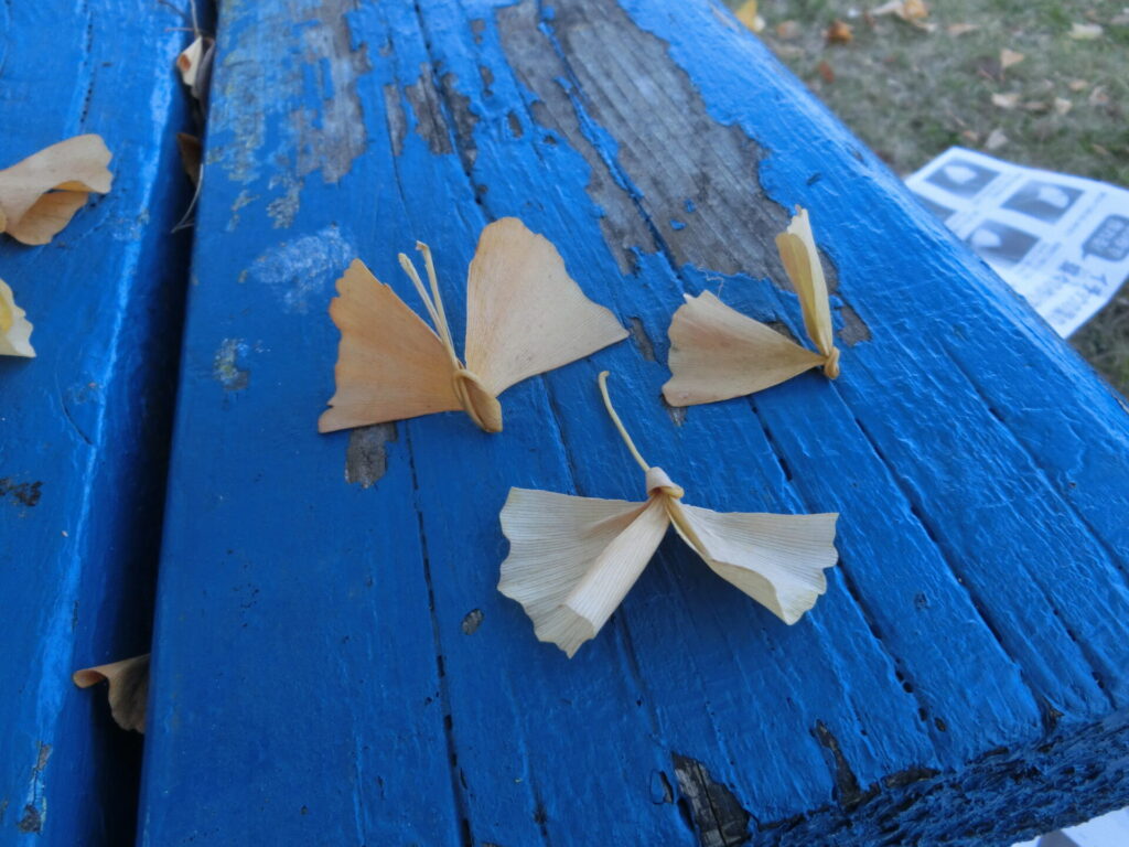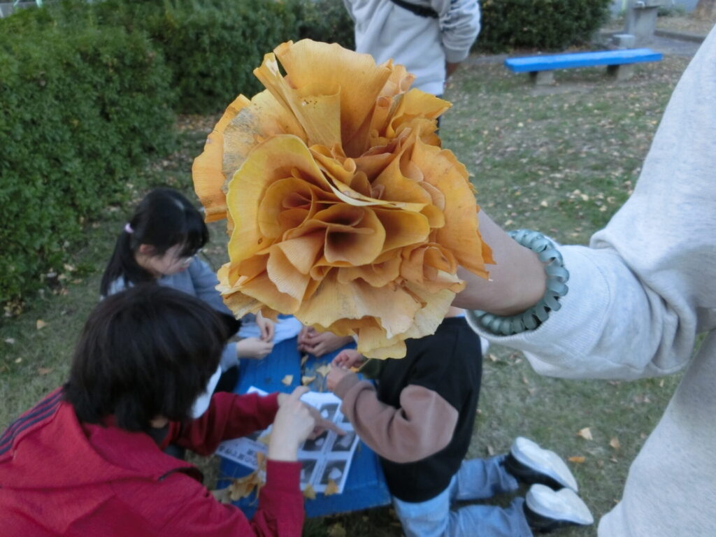 落ち葉掃除のあとにイチョウでちょうちょ 2022年12月10日 最終更新日時 : 2023年2月6日 takatsubo 公園掃除こうえんそうじをいつもお手伝てつだいしてくれる、小学生しょうがくせいの素敵すてきなお友達ともだちがいます。今日きょうも落おち葉ば掃除そうじを手伝てつだってくれました。とても助たすかりました。いつもありがとう! 掃除そうじの後あとに、公園こうえんで遊あそんでいたお友達ともだちも混まじえて、イチョウの葉はでちょうちょと花束はなたばを作つくって遊あそびました。作つくり方かたは以下いかのリンク先さきをご覧らんください。 「たった30秒びょうで簡単かんたん!「イチョウ蝶々(ちょうちょ)」の作つくり方かた」※ウェザーニュースの記事きじより FacebookXBluesky