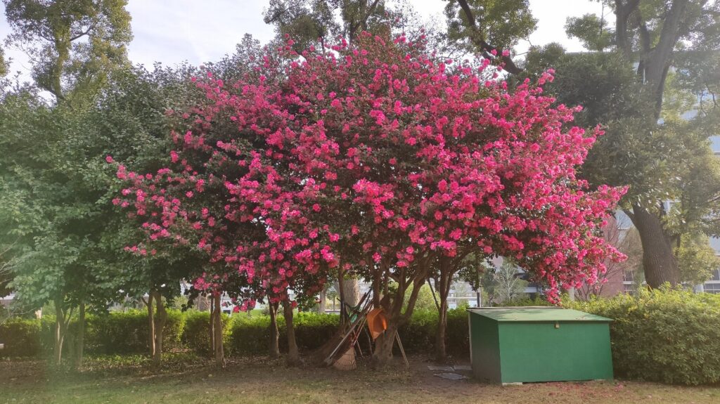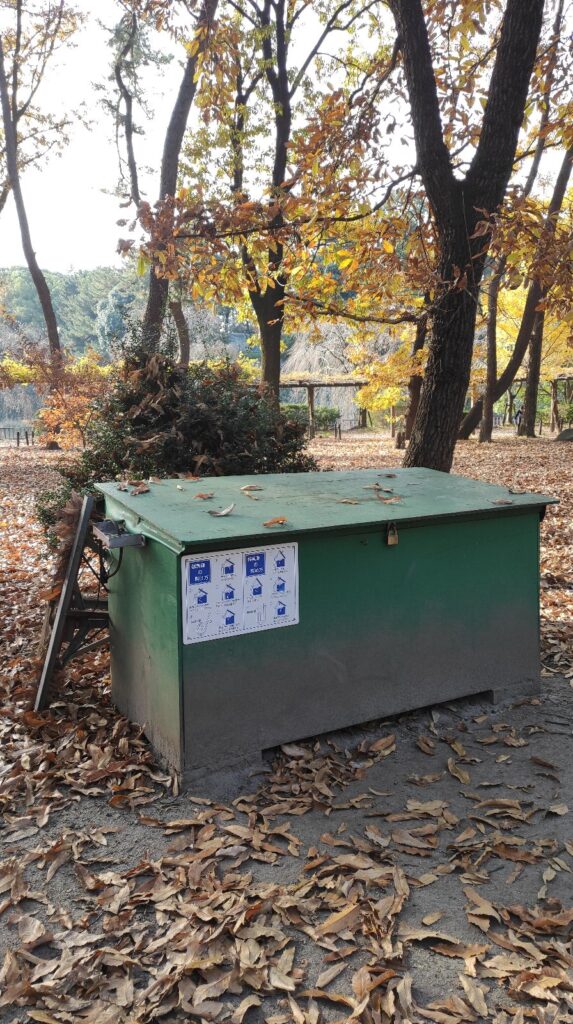 名城公園には公園愛護会が5つあるそうですが、そのためか、公園のあちこちに掃除道具入れが置いてあります。