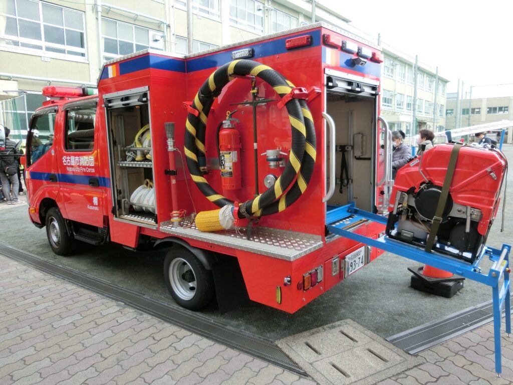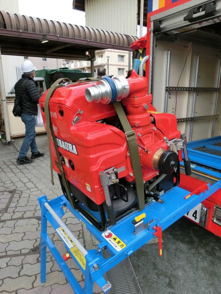 防火啓発ぼうかけいはつ広報活動以外こうほうかつどういがいにも、災害時さいがいじには積載せきさいしている可搬かはんポンプで消火活動しょうかかつどうおこなえるそうです。