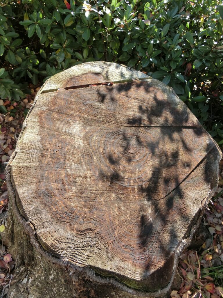 たおされたとき樹齢何年じゅれいなんねんだったのか、ぜひかぞえてみてください。