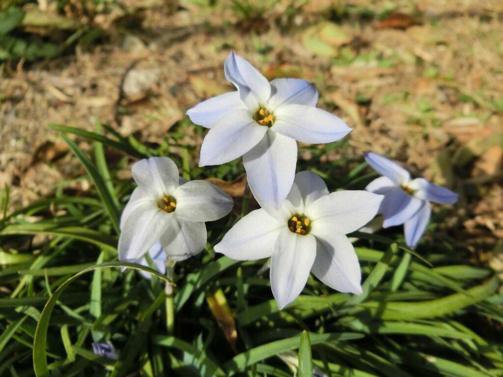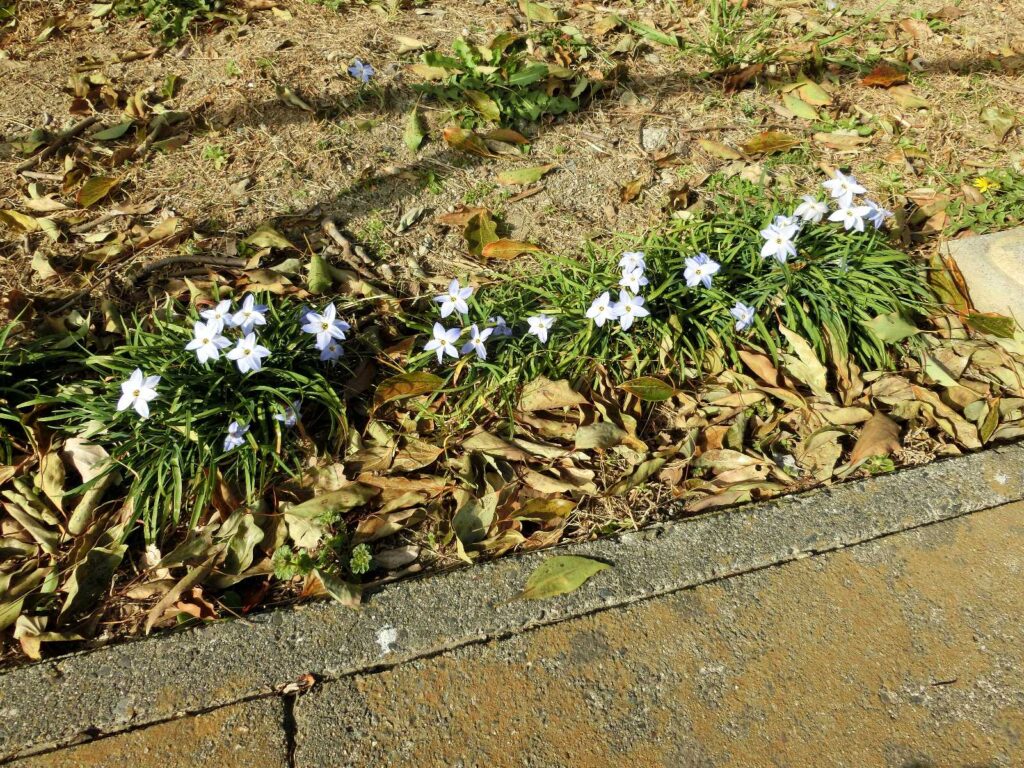 ハナニラも咲き始めました 2023年3月12日 最終更新日時 : 2023年3月11日 takatsubo 高坪公園たかつぼこうえんの西側にしがわ、南側みなみがわの柵さくの下したにハナニラが生はえていますが、南側みなみがわで花はなが咲さき始はじめました。 FacebookXBluesky
