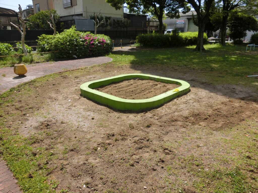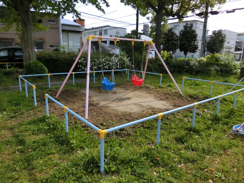 とりあえず遊具の周りだけでもと思い、砂場、滑り台、ブランコ、幼児用ブランコの周囲の草刈りを行いました。
