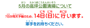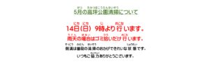 5月の公園清掃は明日7日(日)の予定でしたが、天気予報<[...続きを読む]
