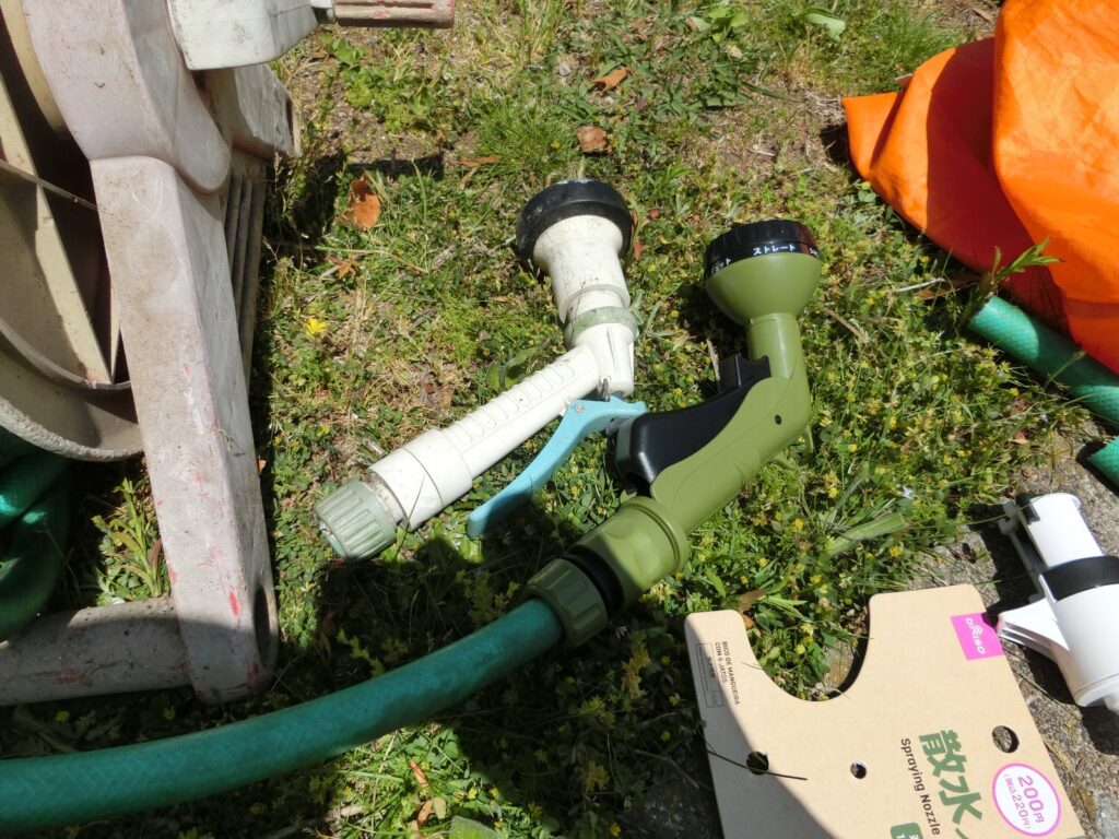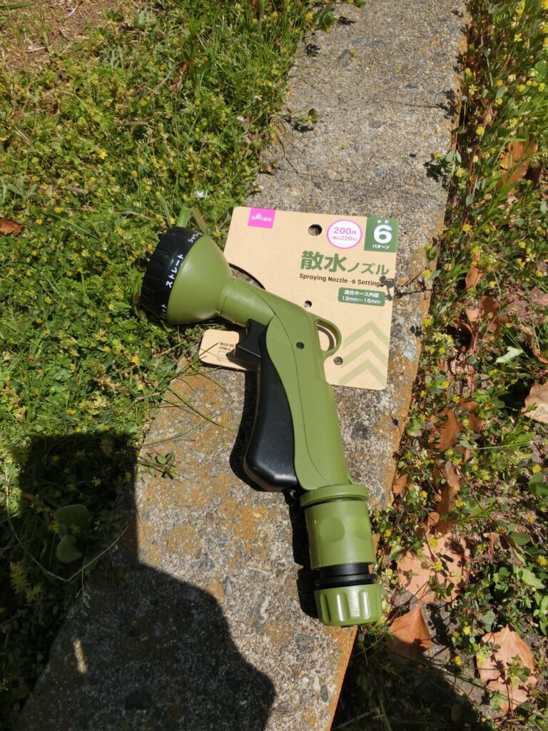 そこで、散水ノズルを新品に交換しました。ダイソーで200円で売ってました。驚きの安さですね。