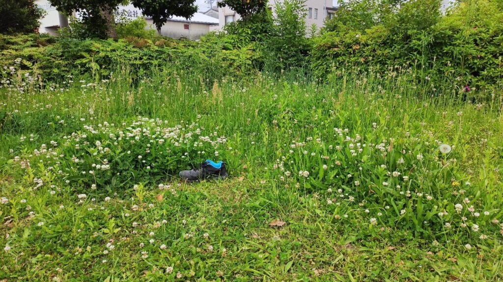 今年は、広場のシロツメグサを刈っているので昨年ほどは目立ちませんが、放置している隅のシロツメグサは既にかなり成長しています。