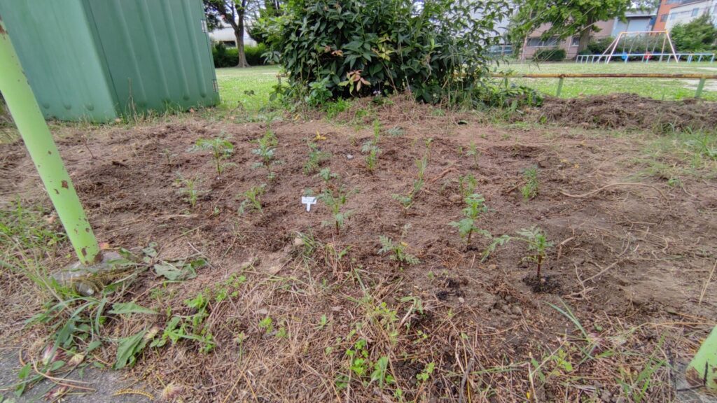 今回の苗は、今年の5月の記録的な猛暑で多くが枯れてしまったり、ナメクジに葉を食べられたりして、全体的に不作で、かなり弱弱しい感じになってしまいました。