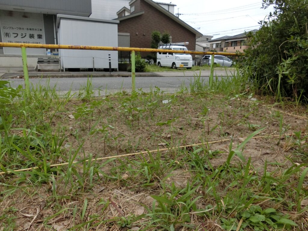 左側は種まきの際に肥料をまいていて、かたや右側は肥料をまいていません。それもあって左右で生育に差が出ているのかもしれません。