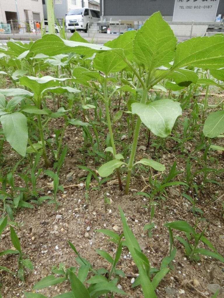 ヒマワリの種を6月4日の公園清掃の際に蒔いてから3週間経ちました。