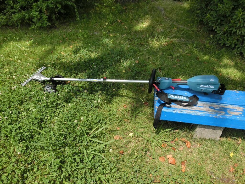 電動草刈り機で、特にイネ科の長い草などを刈るのがとても楽になりました。手動芝刈り機だと、シロツメクサがせいぜいです。