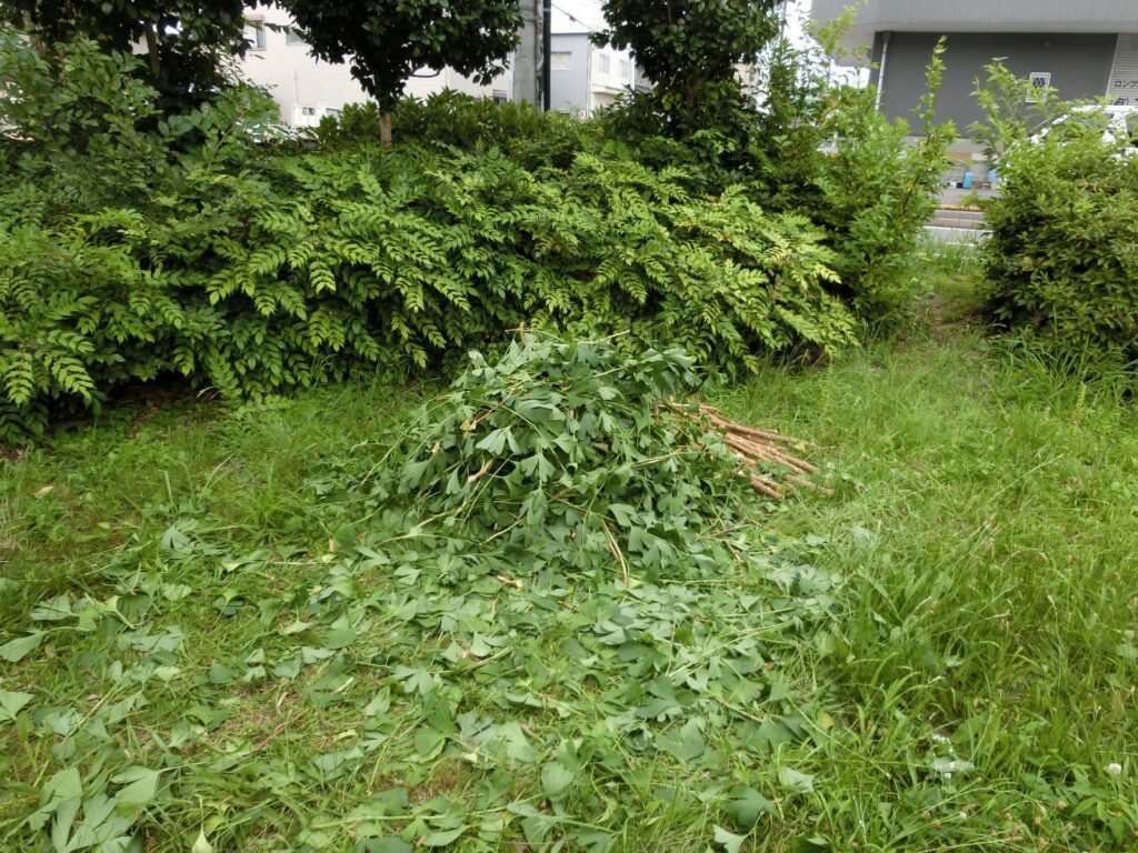 その際、7月初めに切ったまま放置していたイチョウの枝も一緒に片付けていただいたようです。