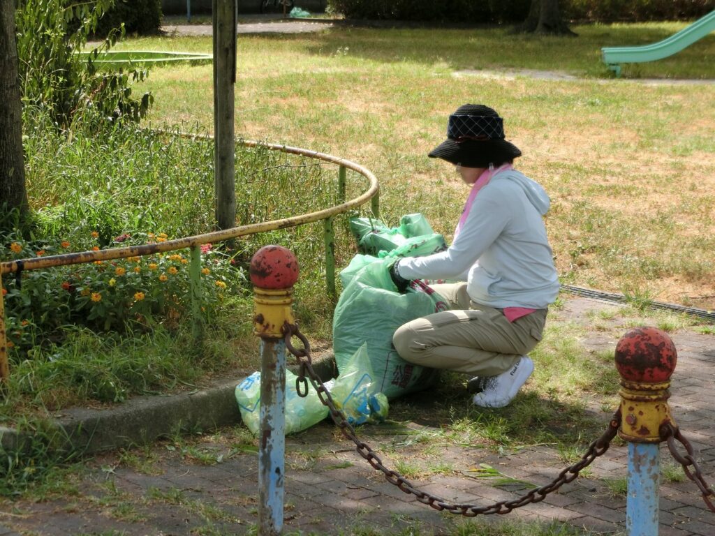 8がつ6(にち)に、つき一度いちど公園こうえん定期清掃ていきせいそうおこないました。