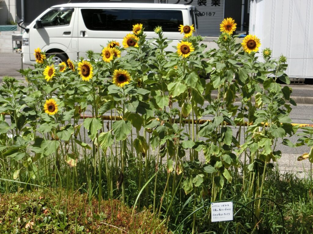 高坪公園のヒマワリの花が、次々と開花してきました。まだ蕾もたくさんあり、これからも楽しみです。