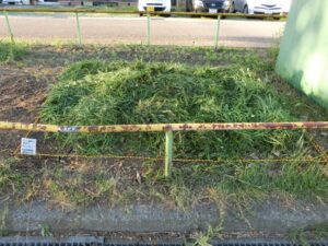 高坪公園では広場で雑草が茂って、草刈りで大量の刈草[...続きを読む]