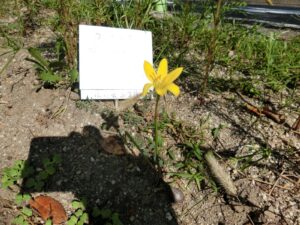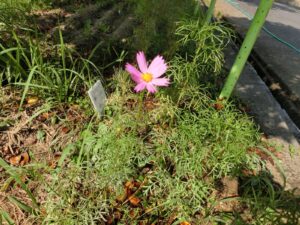 写真では花の裏のボードの字が見えませんが、「コスモスを植えました」のボードの前<[...続きを読む]