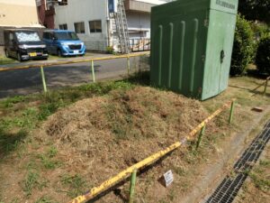 公園の物置の脇に、刈った草を堆肥化する場所を<rub[...続きを読む]