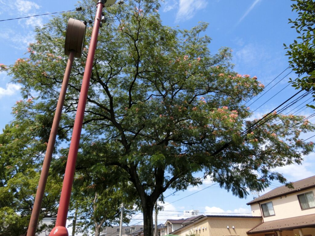 公園の北側にある合歓の木が、また花を咲かせ始めました。