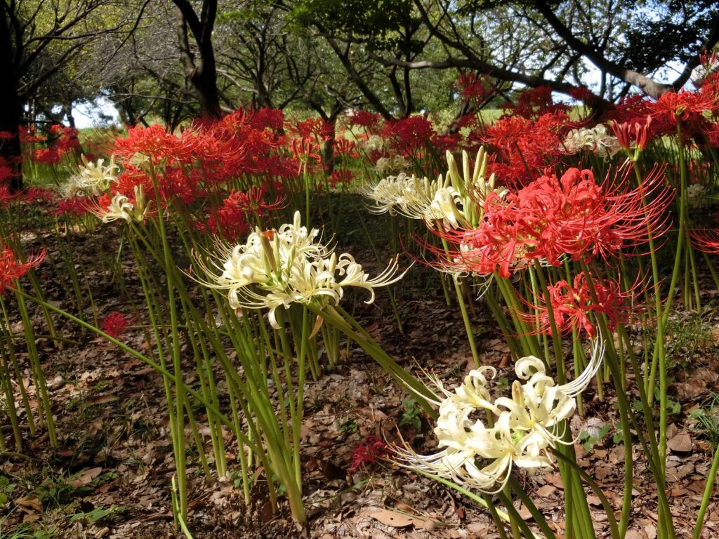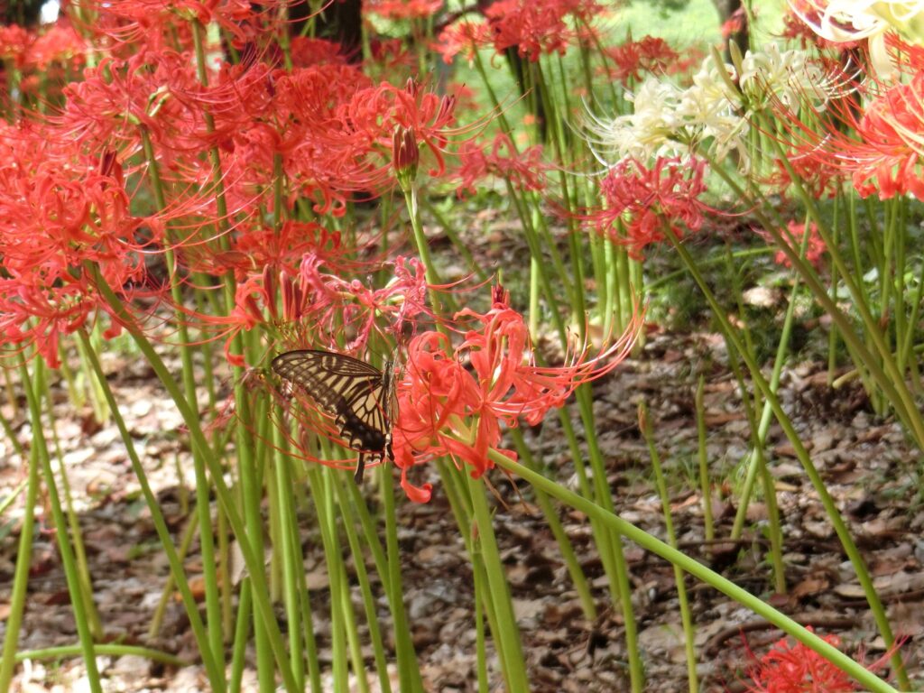 先日は高坪公園で彼岸花が咲いているのを見つけましたが、庄内緑地公園でもたくさんの彼岸花が咲いていました。