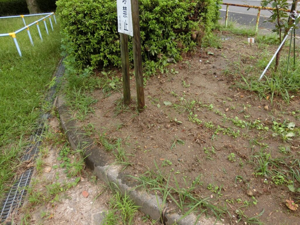 少し前に、公園の南側の入り口近くで雑草が茂っていたところを、土を掘り返して花菜の種を蒔きました。