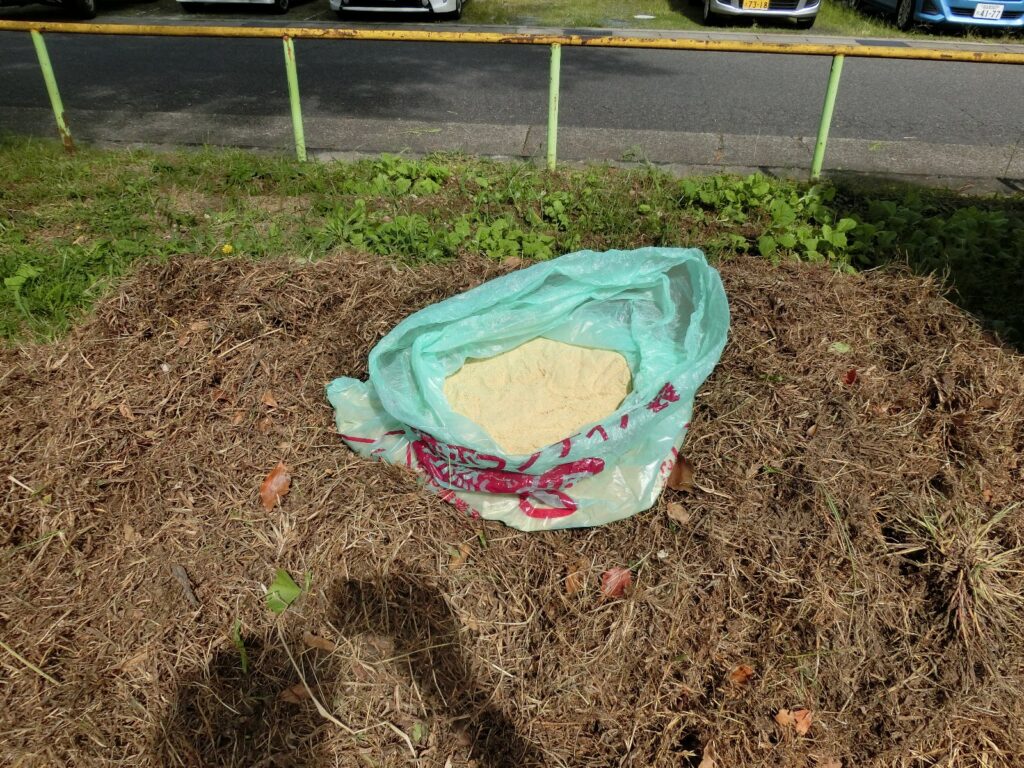 米ぬかを撒いて堆肥作り