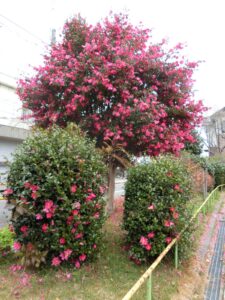 高坪公園の西側と北側に生えているサザンカが満開を迎えています。背[...続きを読む]