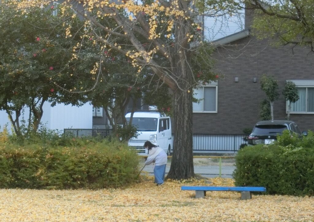 公園で掃除をしていたところ、公園に遊びに来た女の子が、自主的に落ち葉掃除を手伝ってくれました。
