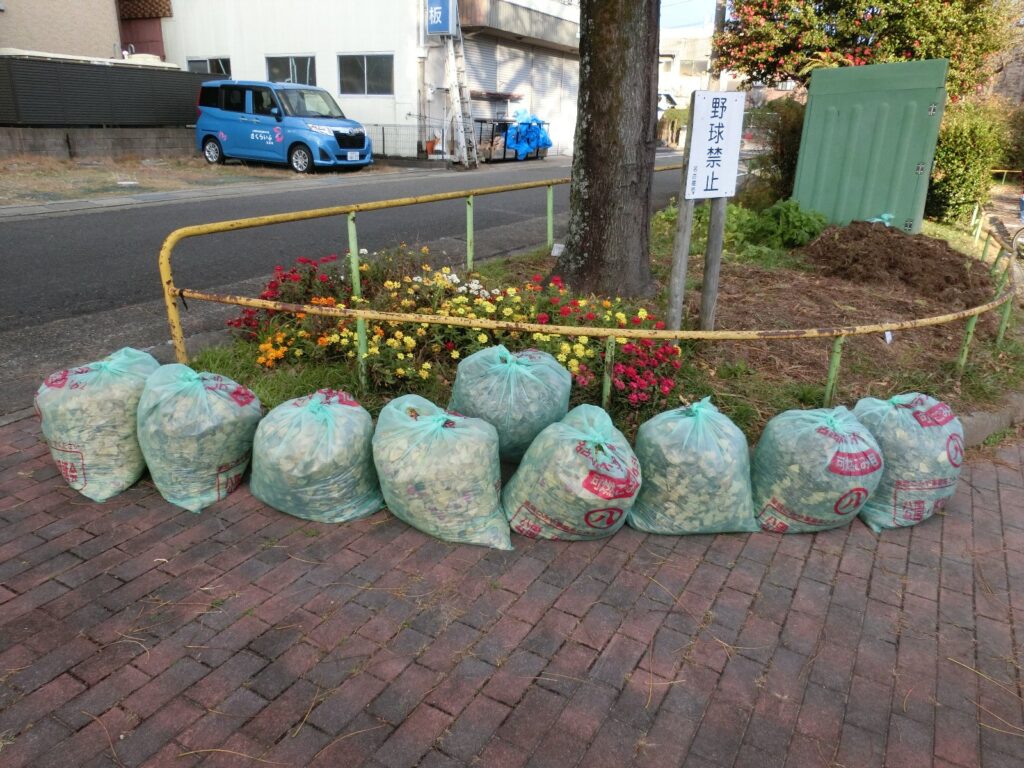 12月初めの定例の公園掃除から落ち葉掃除を始めて三週経ちますが、なかなか掃除が終わりません。