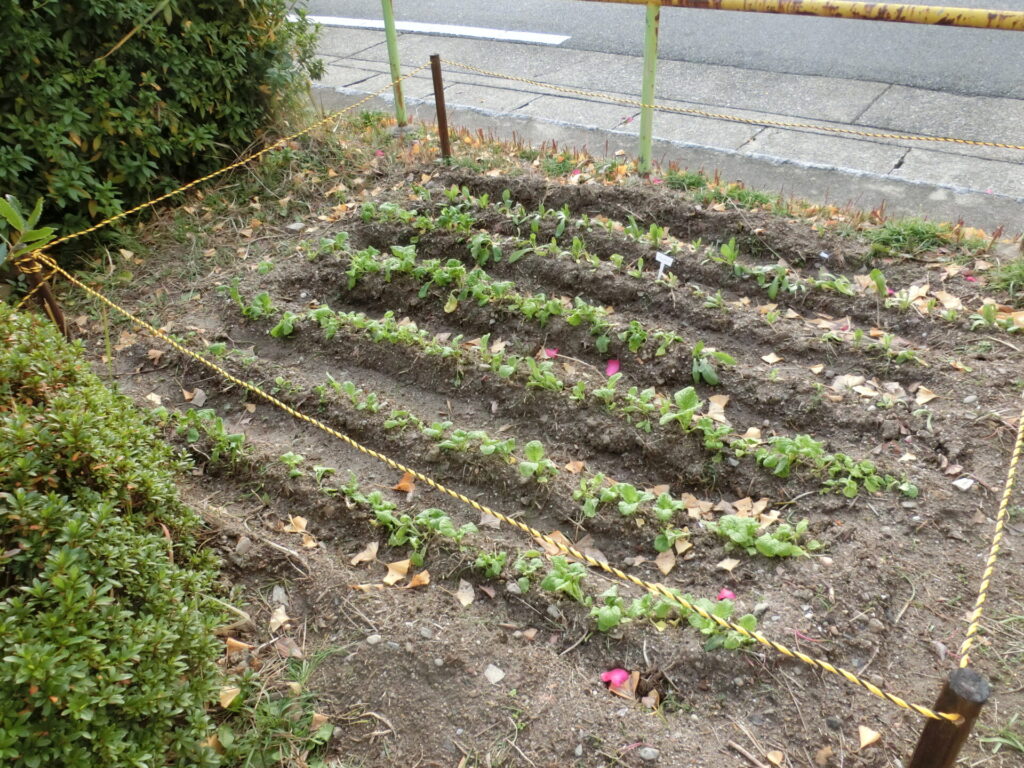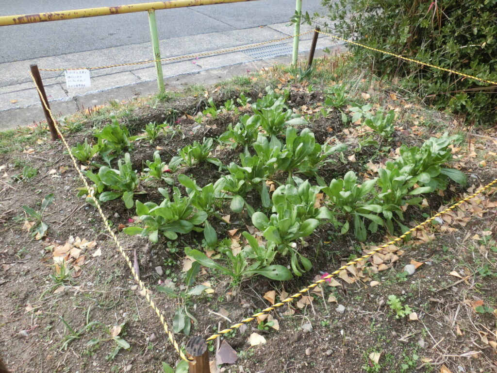 これらは、手元に余っていた種を自宅で育てて、ようやく公園に植えても大丈夫そうな大きさに育ったので、移植したものです。