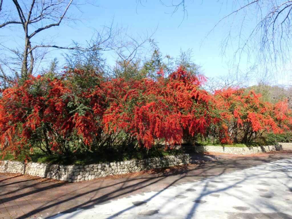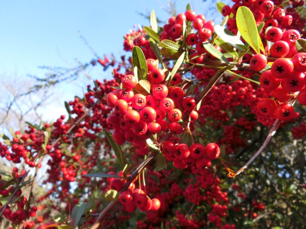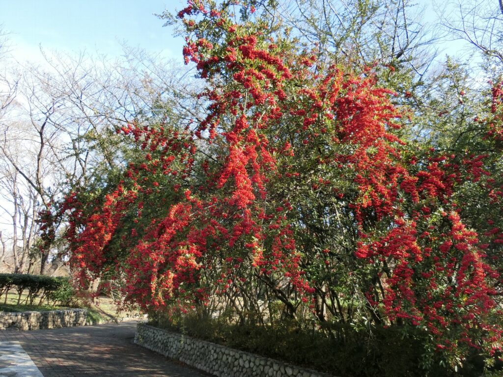 庄内緑地公園で、真っ赤な木の実の群集を見つけました。ピラカンサというそうです。