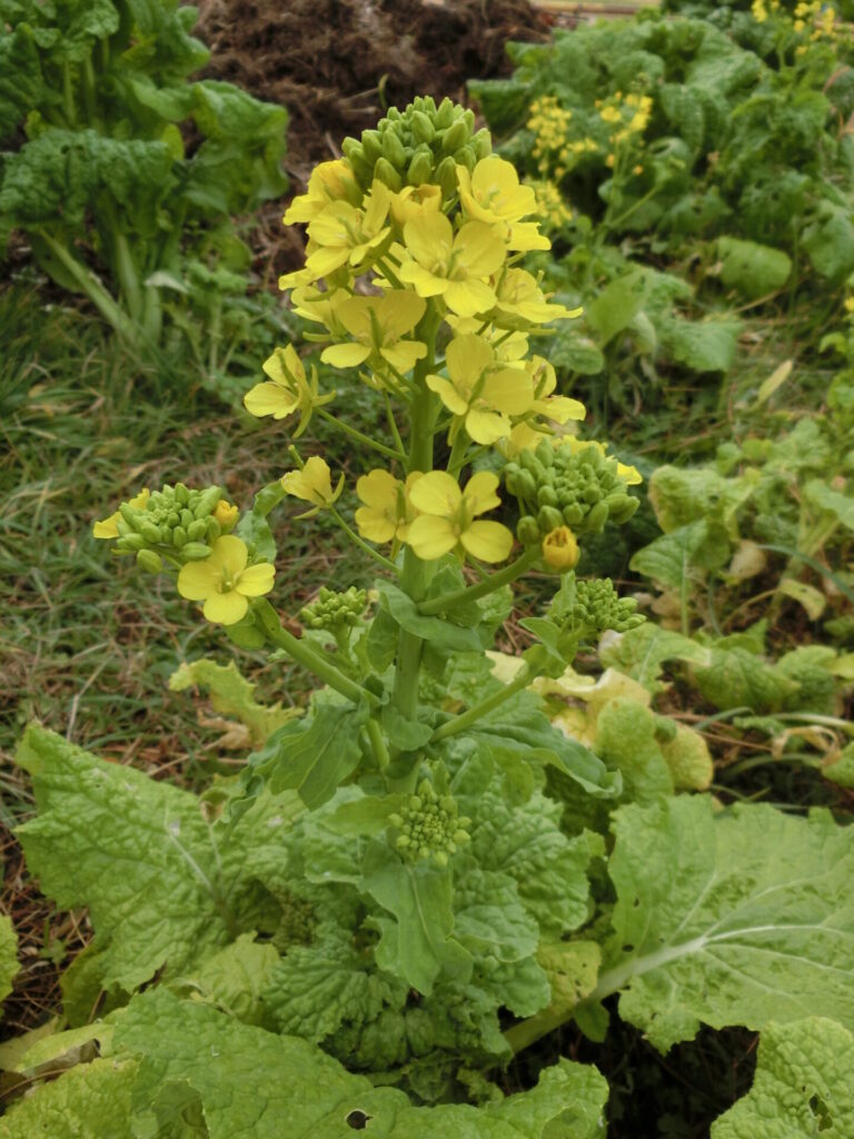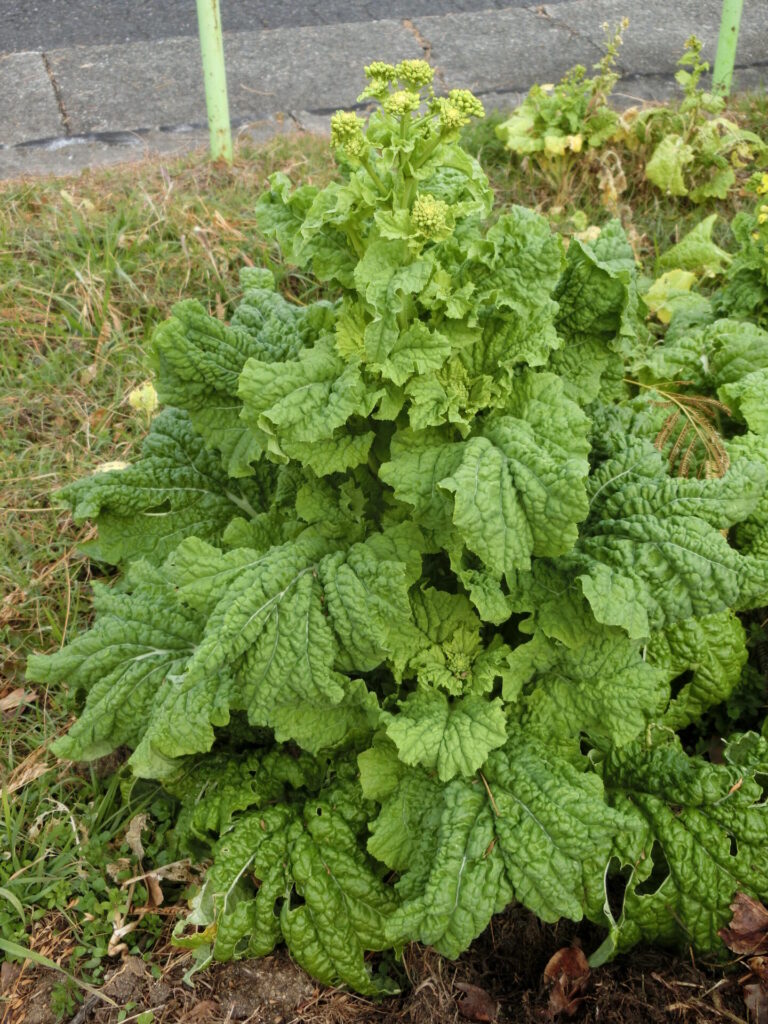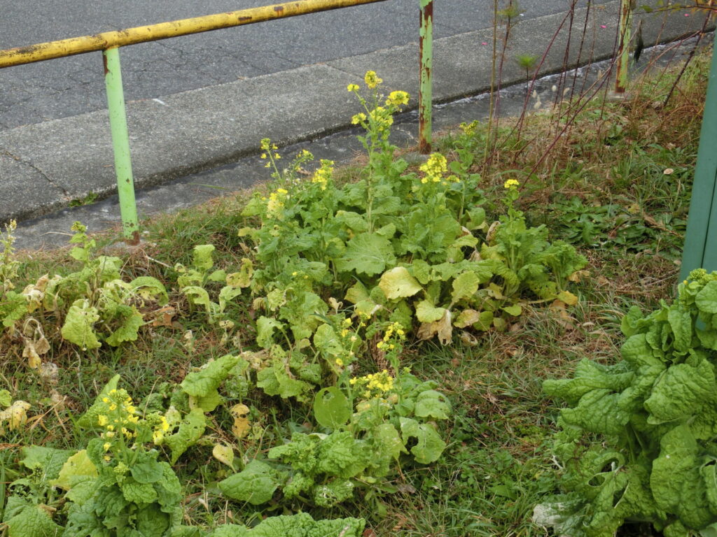 公園北側の、物置の東側の花菜の様子。合歓の木の下の花菜と同時期に植えましたが、こちらの花はもう少し先になりそうです。