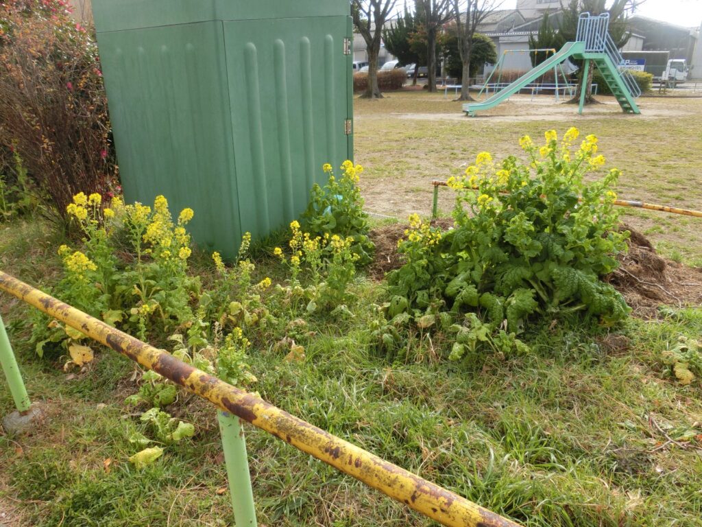 ちなみに、高坪公園ではあちこちに植えた花菜が咲いていて、きれいですよ!