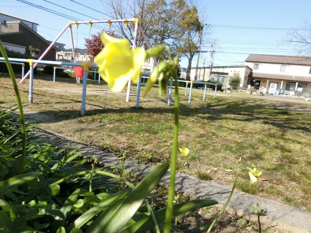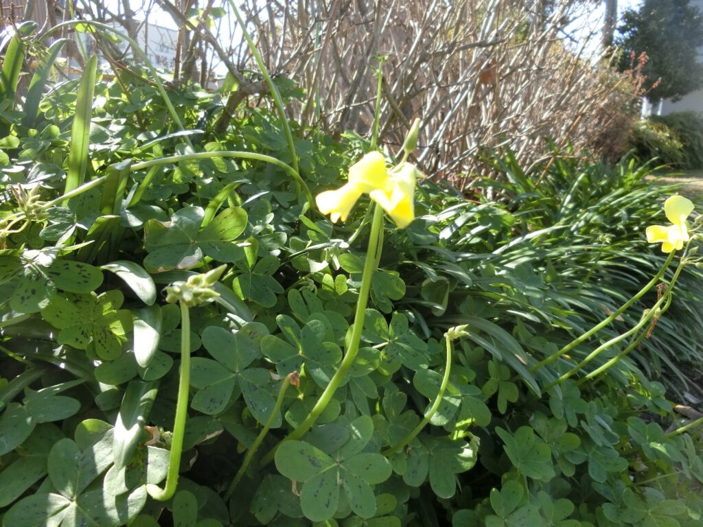 高坪公園の南側の入り口近くで、小さな黄色い花を見つけました。オオキバナカタバミをというそうです。