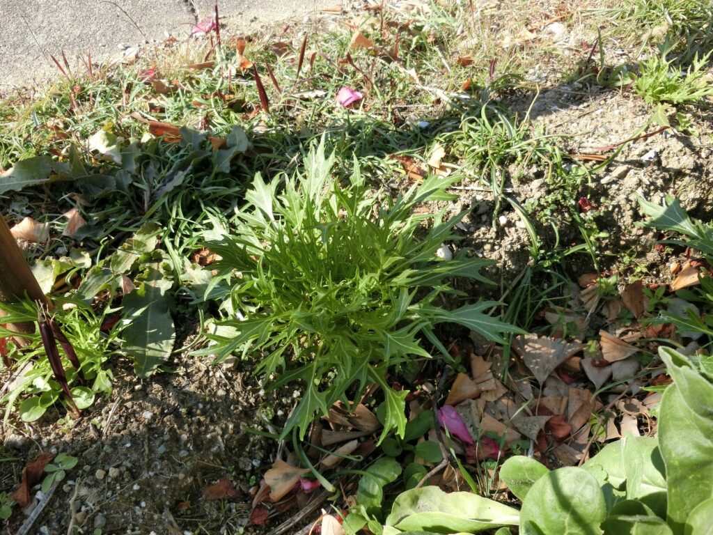 ここのキンセンカは自宅で苗を育ててから移植したので、種に混じってたわけではありません。
