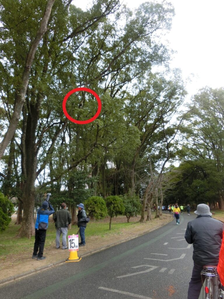 それにしても、人になれているようで、木のすぐ下のサイクリングコースを多くのランナーが走っていても、驚く様子もなく、じっと枝に留まっています。