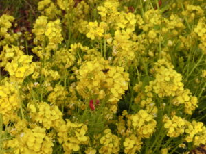キンセンカの花壇の土づくりで肥料に混じってやってきた、ミズナ(水菜)が花を咲[...続きを読む]