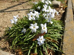 公園の周囲の柵の下に、ハナニラが咲いています。近所の方[...続きを読む]