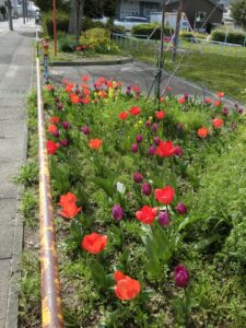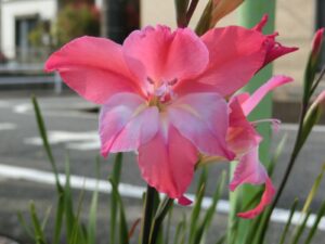 高坪公園の北側入口脇に、グラジオラスが咲いていました。チューリップに負けず劣らず、きれいですね。