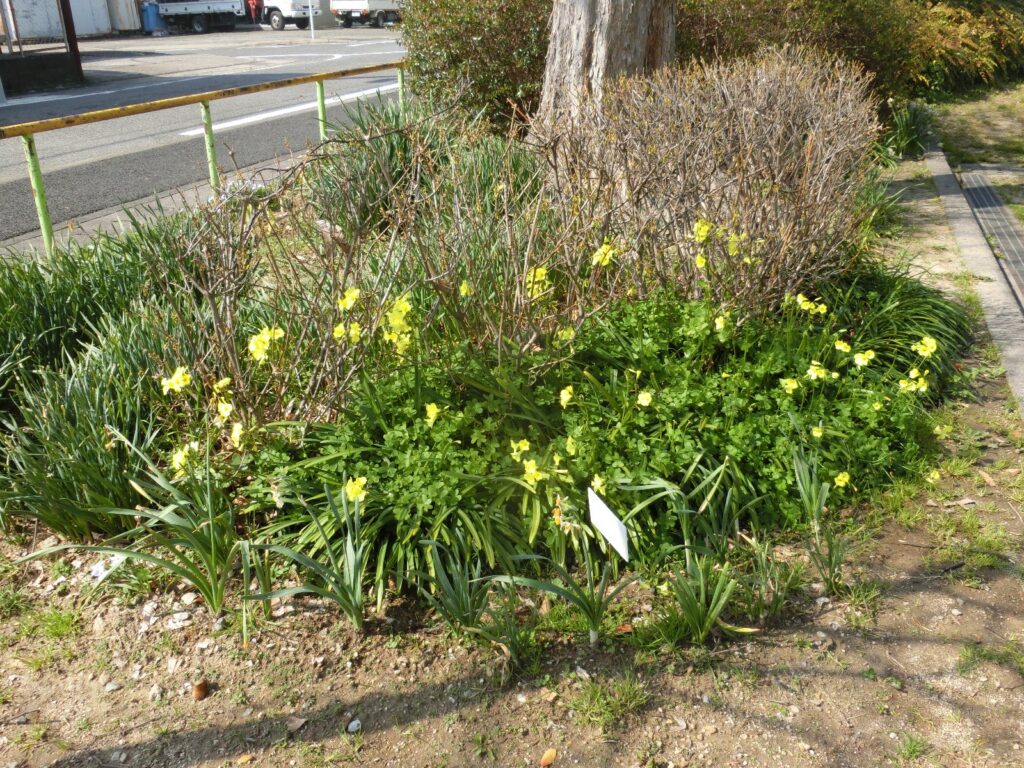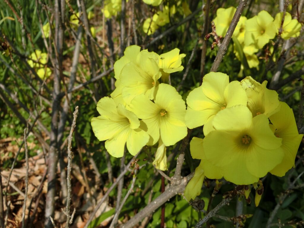 高坪公園の南側入り口付近で、オオキバナカタバミが咲いています。