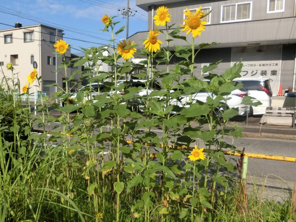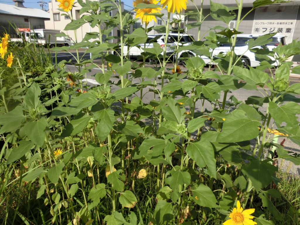 高坪公園で7月に入ってすでにヒマワリが次々と咲き始めました。