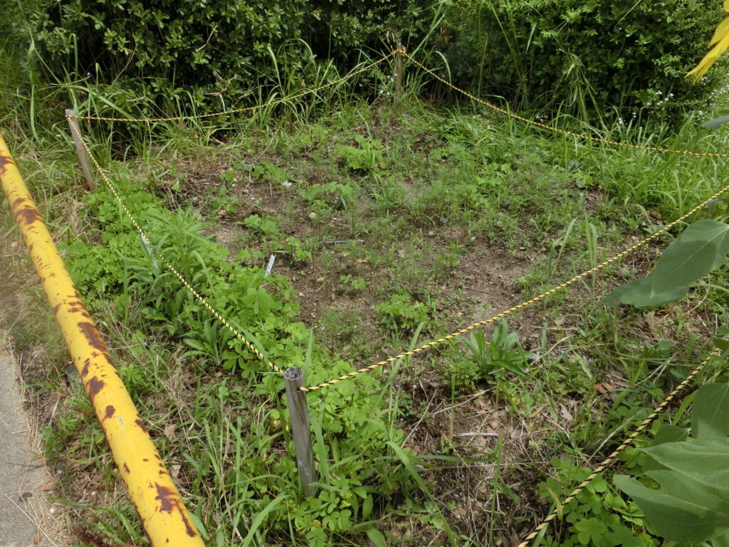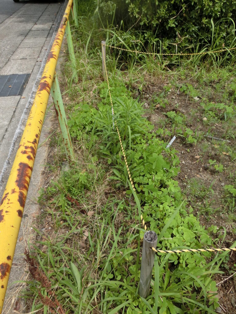 高坪公園で、以前にキンセンカを植えていたところに、大きなシロツメグサのようは葉の植物が育ち始めて、話題になっています。