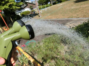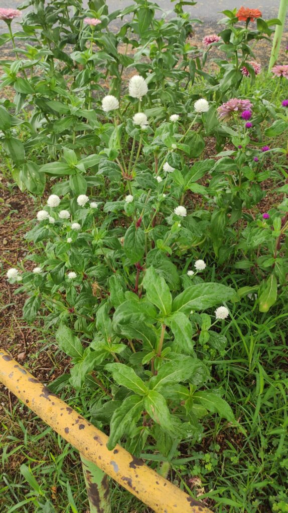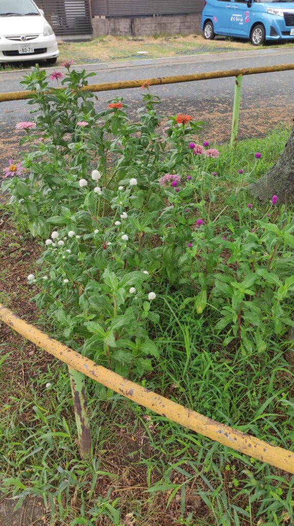 高坪公園の北側の、合歓の木の下に植えている千日紅が開花しました。
