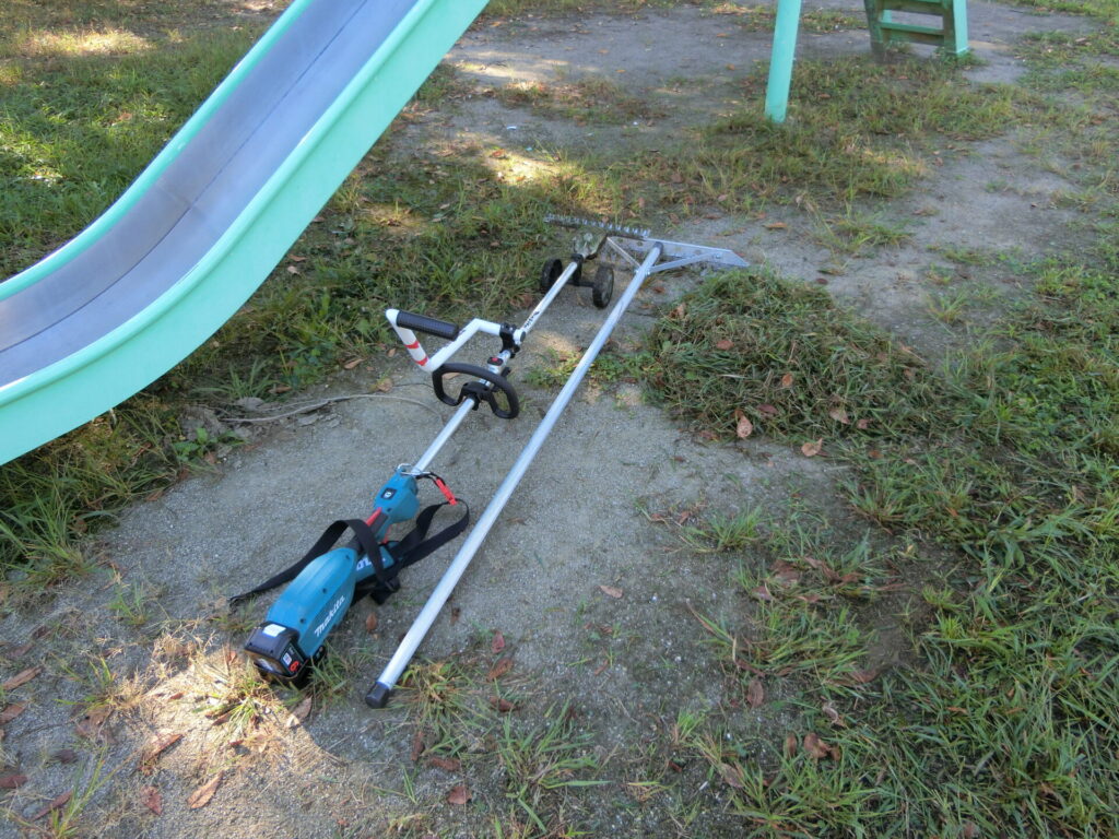 2週間前に愛護会で草刈りしてあったので、今回はビンゴ大会で子供たちが集まる滑り台周辺を刈っておきました。