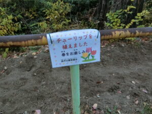 今後も長くチューリップの花壇を維持するためには、まだ花を咲かせるには早い若い次世代の球根も育てていこうと思い、空いている場所に植えることにしました。