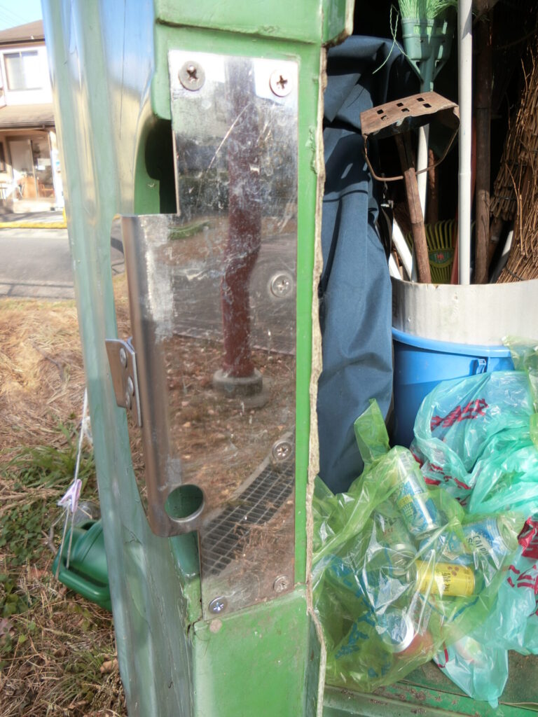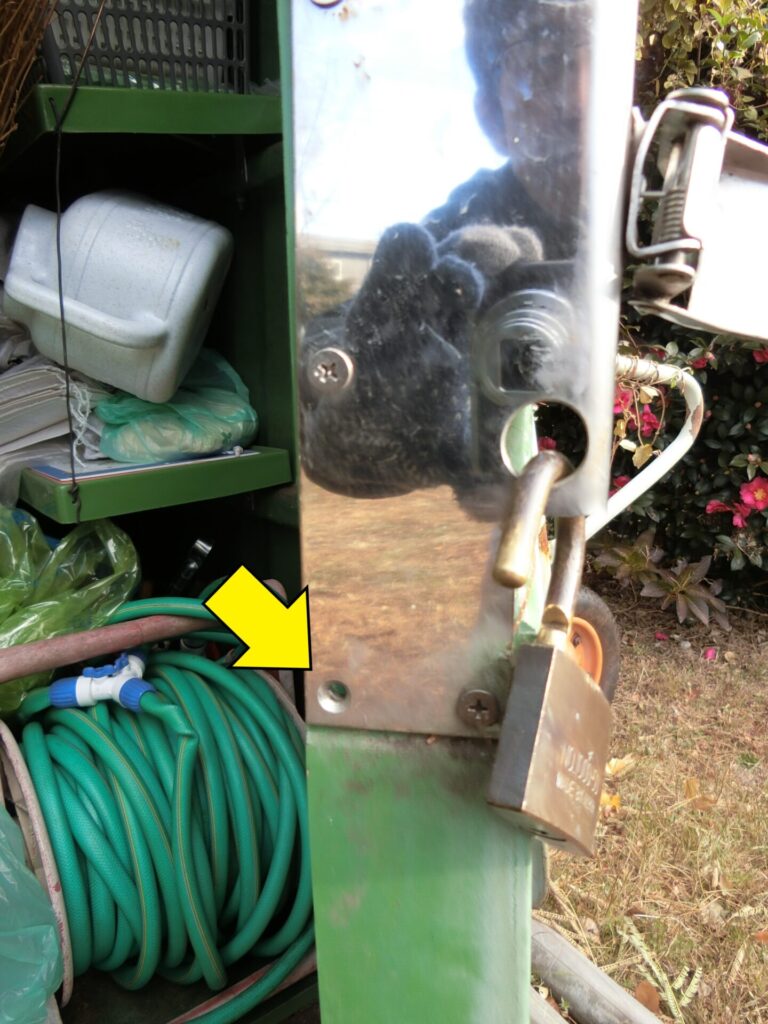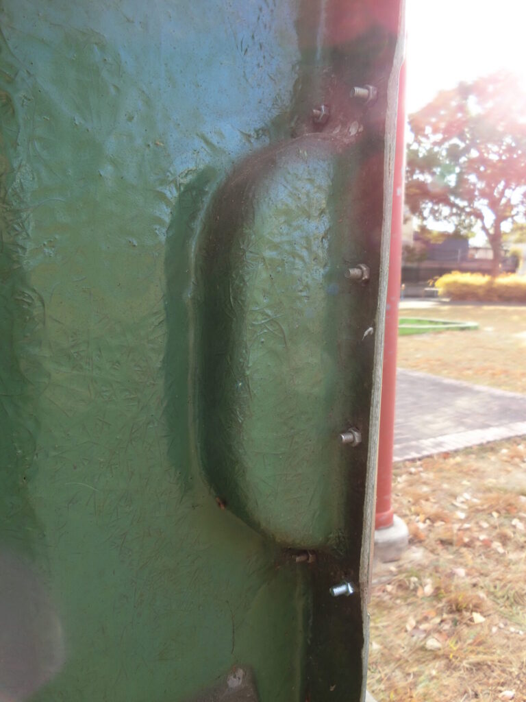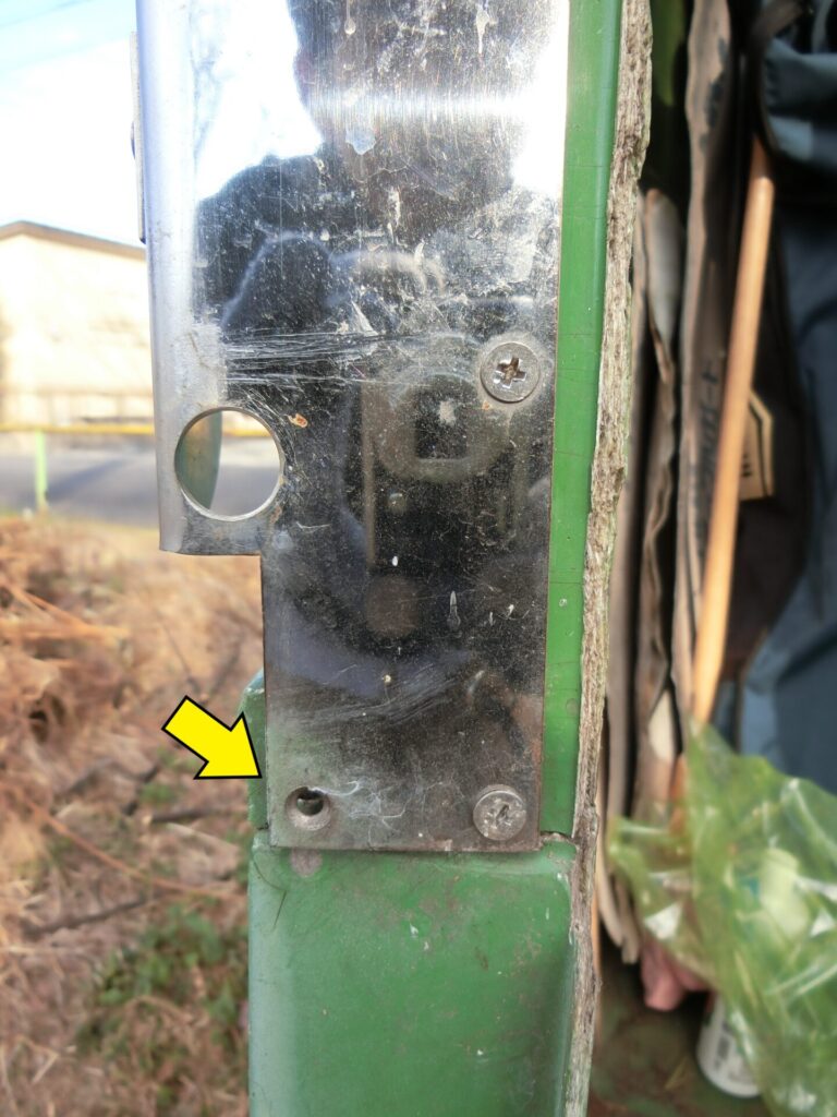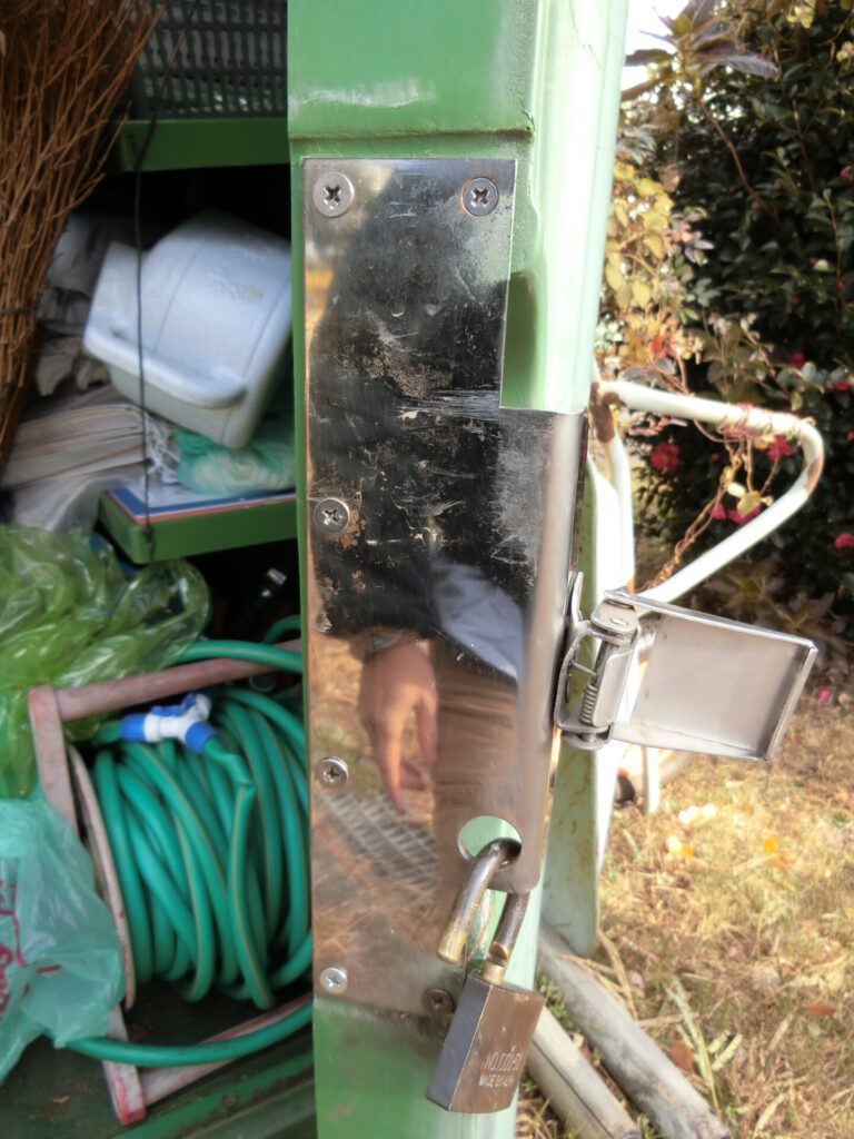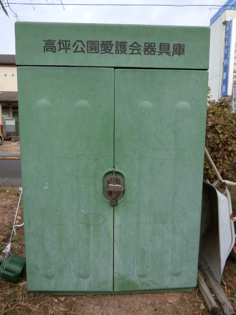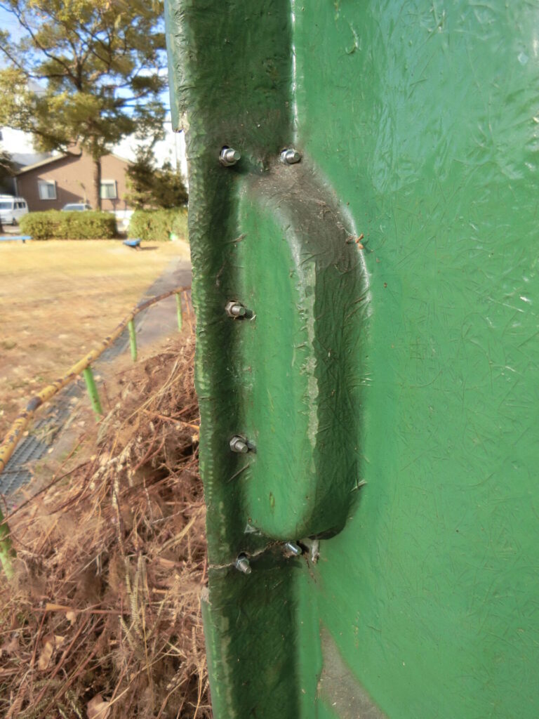 高坪公園の物置の部品を留めているネジが、あちらこちらで外れていました。