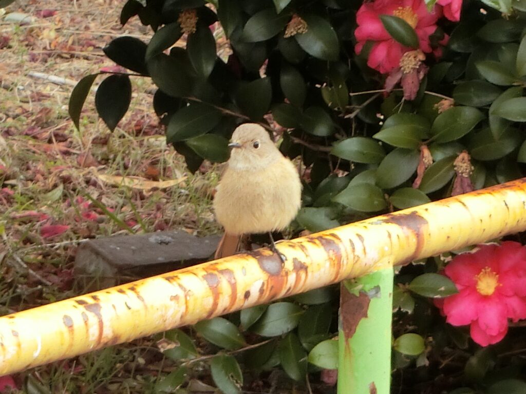 先日、公園で掃除をしていたら、またジョウビタキのメスが近づいてきました。