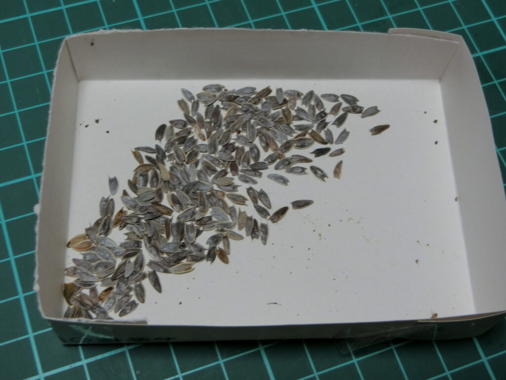 中身を出してみました。ヒマワリの種が小さくなってぺっちゃんこになったような…