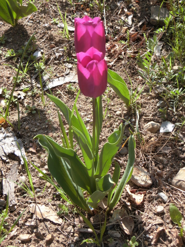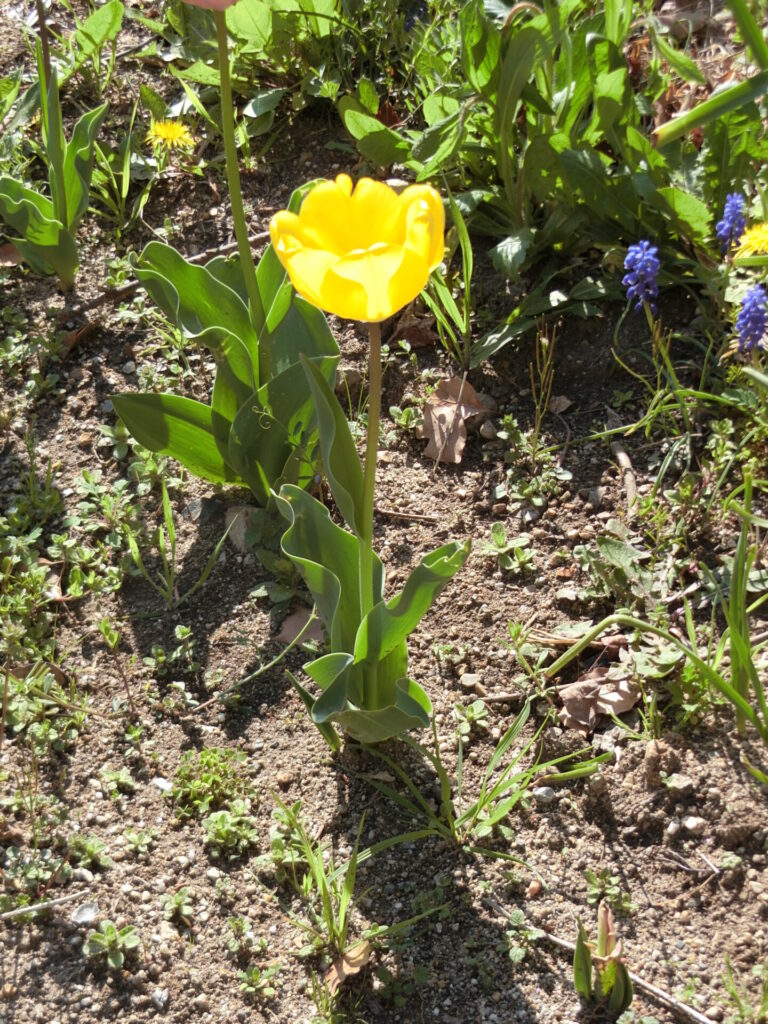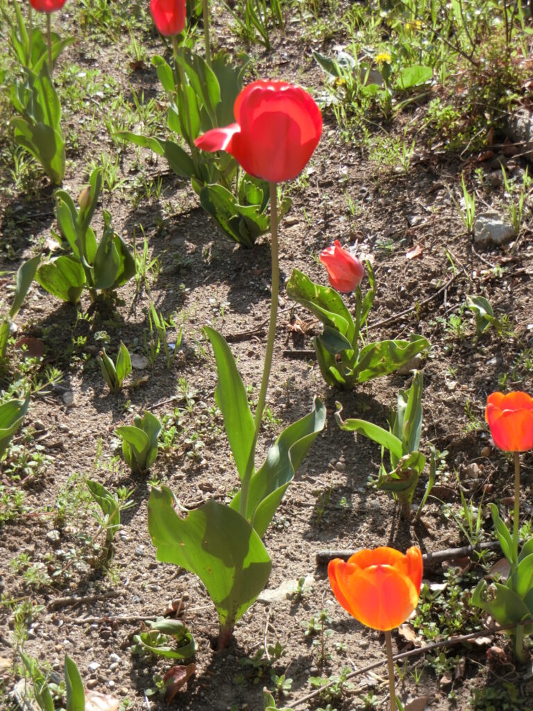 まだ咲かないと思っていた小さな球根を育てるために植えた、ねむの木の下のチューリップも、結構な数が咲きました。