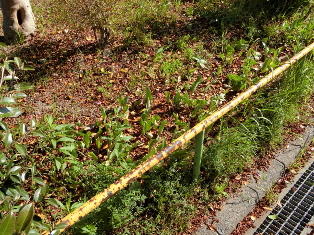 砂場近くのベンチ裏に植えた、小さな球根のほうは、やはり咲きませんでした。ちょっとザンネン。
