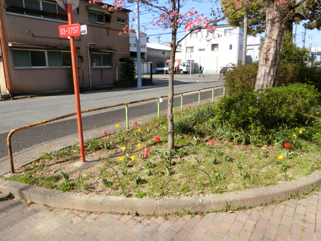 高坪公園の北側の、さくらいふ丸新町前の花壇の様子です。