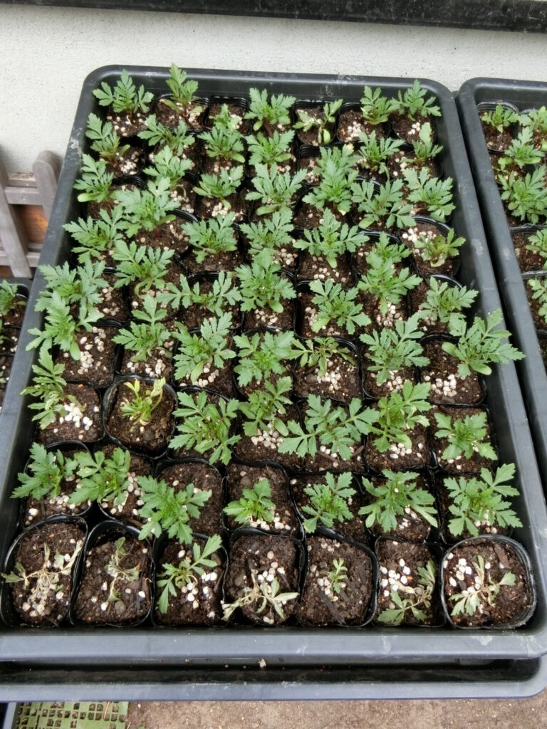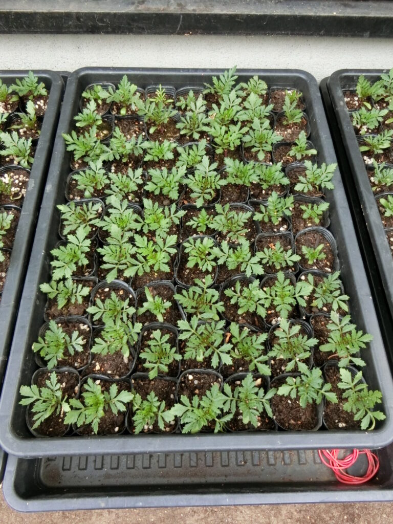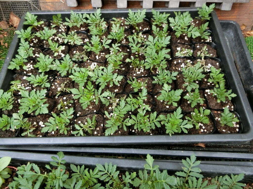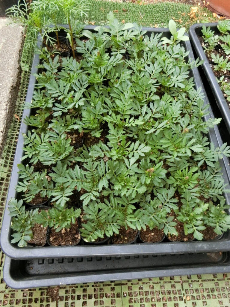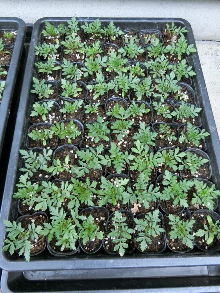 フレンチマリーゴールドの苗が順調に育っています